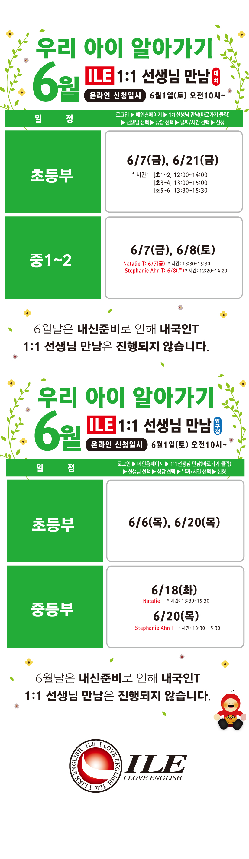 ILE 6월 1:1 선생님 만남 안내(대치/압구정)
