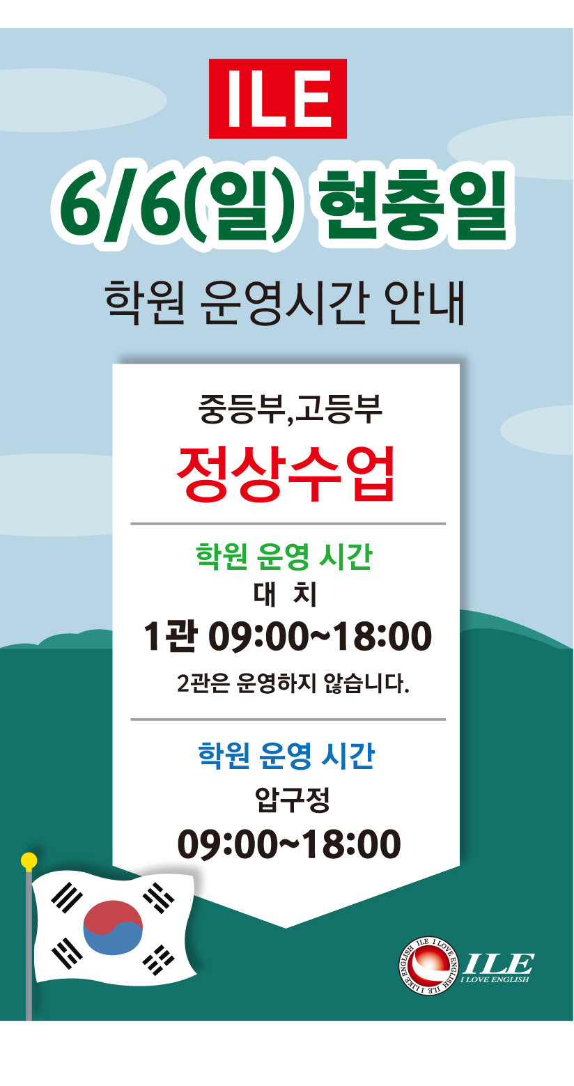 6/6(일) 현충일 학원 운영시간 안내[대치/압구정]