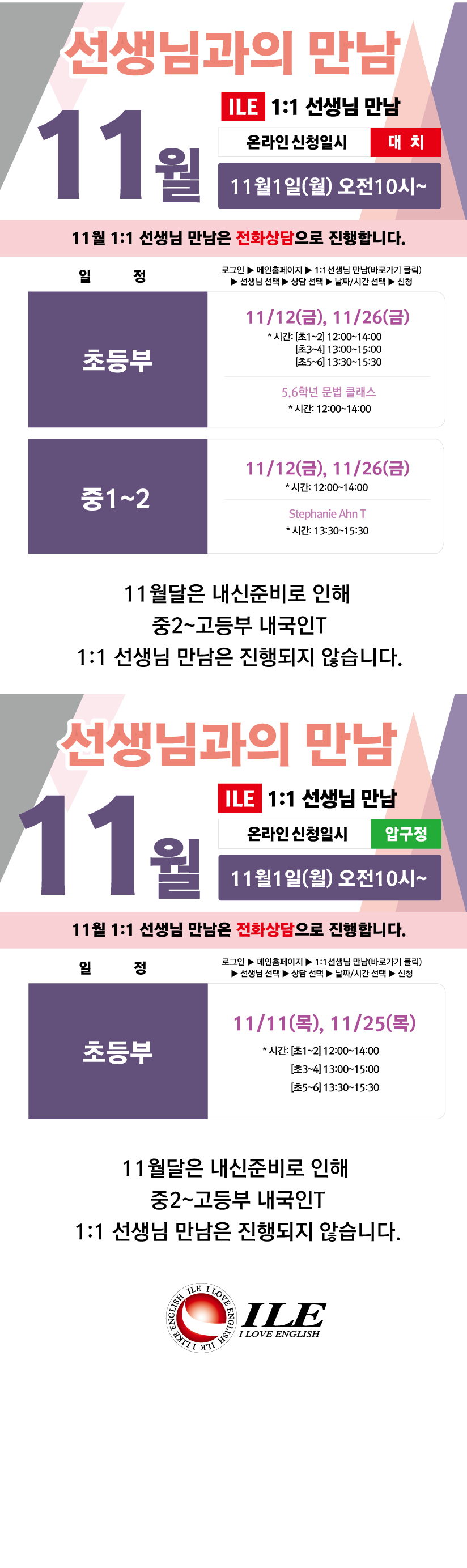 ILE 11월 1:1 선생님 만남 안내(대치/압구정)