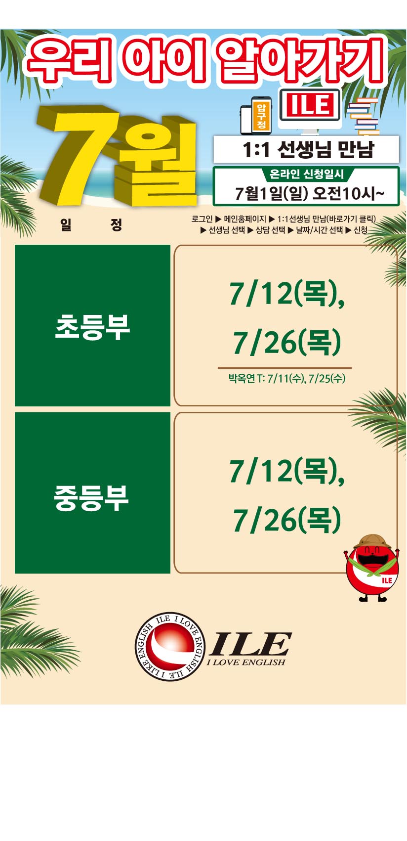 ILE 7월 1:1 선생님 만남 안내(압구정)