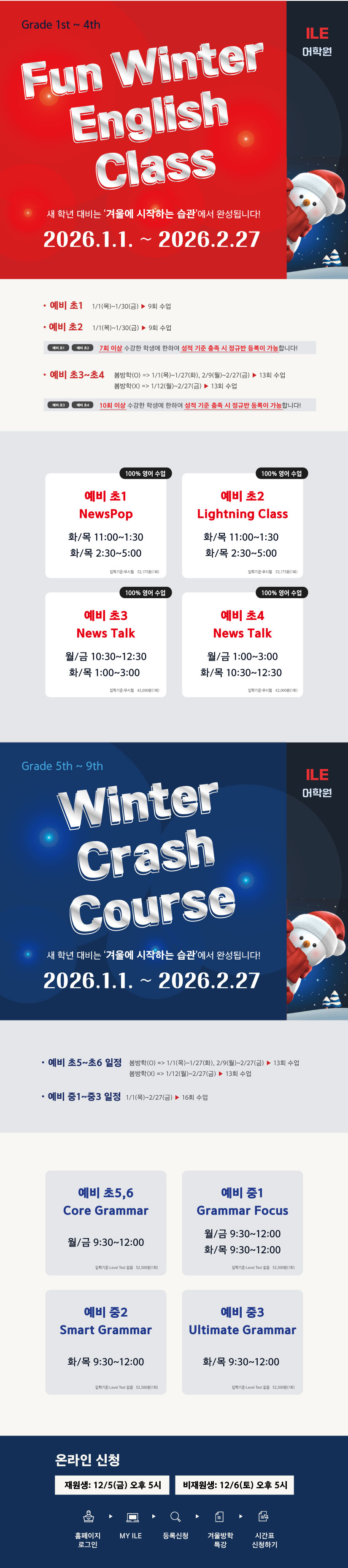 ILE에서 자체 개발한 학년별 Level Test 진행
